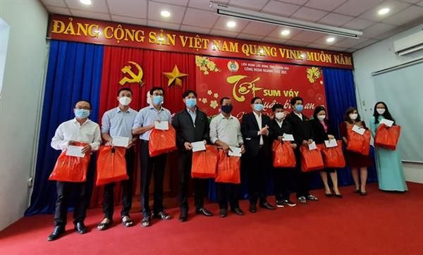 Với phương châm “Tất cả đoàn viên, nhà giáo, người lao động đều có Tết”, nhân dịp Tết Nguyên đán Nhâm Dần - 2022, Công đoàn ngành Giáo dục đã tặng 570 suất quà Tết cho đoàn viên, nhà giáo, người lao động có hoàn cảnh khó khăn, bị bệnh hiểm nghèo, bị ảnh hưởng bởi dịch Covid-19 với tổng số tiền 285 triệu đồng. Trong đó từ nguồn Quỹ cứu trợ phòng chống Covid -19 của Ủy ban Mặt trận Tổ quốc Việt Nam tỉnh hỗ trợ 500 suất, mỗi suất 500.000 đồng; từ nguồn phân bổ của Liên đoàn Lao động tỉnh hỗ trợ 70 suất, mỗi suất 500.000 đồng (trong đó có 01 suất quà trị giá 200.000 đồng và 300.000 đồng tiền mặt).
