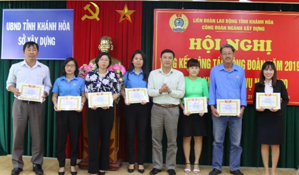 Toàn ngành có 1 đoàn viên ưu tú được Bộ Xây dựng vinh danh, 4 đơn vị được Bộ Xây dựng tặng bằng khen trong phong trào thi đua “Tổ chức tốt hơn nữa điều kiện sống và làm việc cho cán bộ công nhân viên ngành Xây dựng”. LĐLĐ Khánh Hòa tặng bằng khen cho 4 tập thể, 5 cá nhân có nhiều đóng góp cho hoạt động công đoàn năm qua.