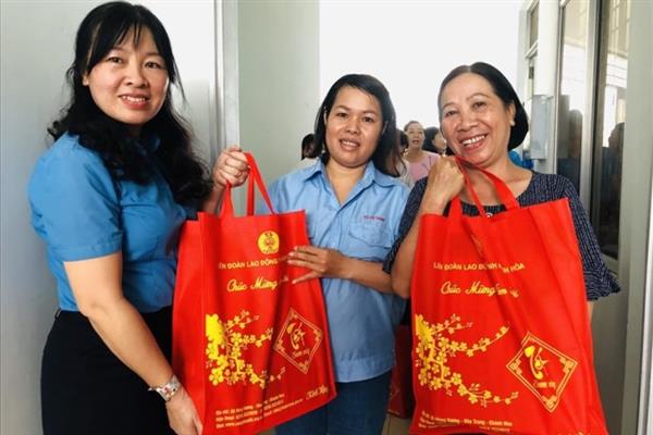 Những phần quà "Tết sum vầy" được Công đoàn ngành trao cho CNLĐ khó khăn