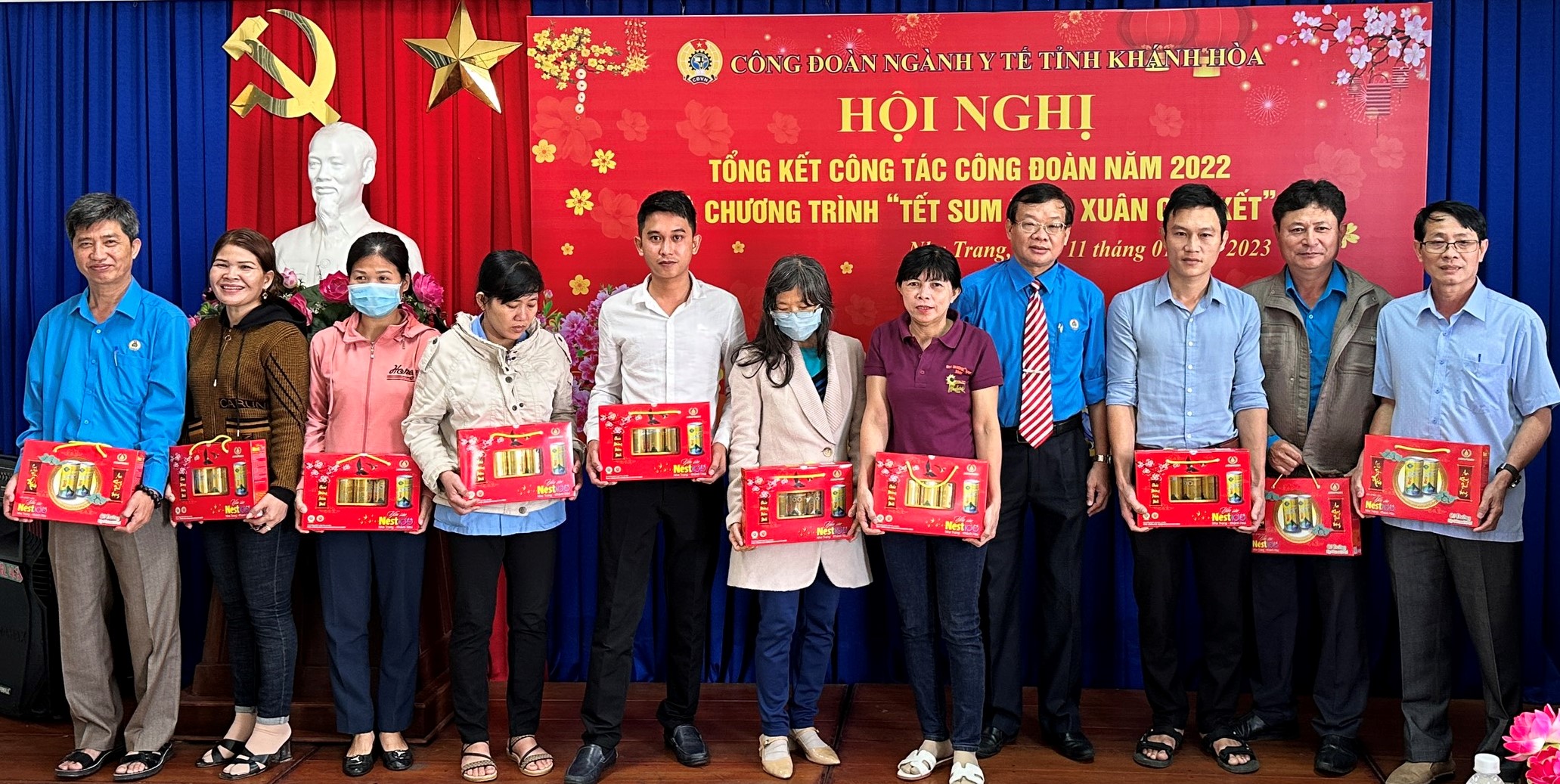 Nhân dịp này, CĐN Y tế tỉnh trao quà tặng và số tiền hỗ trợ cho 401 cán bộ, đoàn viên có hoàn cảnh khó khăn với số tiền hơn 200 triệu đồng và trao 6 triệu đồng học bổng của Báo Lao động cho 03 học sinh, sinh viên dân tộc thiểu số có hoàn cảnh khó khăn là con cán bộ đoàn viên của Trung tâm Y tế huyện Khánh Vĩnh. Các Công đoàn cơ sở trực thuộc cũng trao tặng 1.651 suất quà cho đoàn viên với hơn 360 triệu đồng.