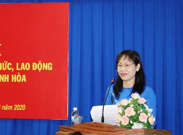 Đ/c Nguyễn Thị Hằng - Phó Chủ tịch TT LĐLĐ tỉnh phát biểu tại Hội nghị