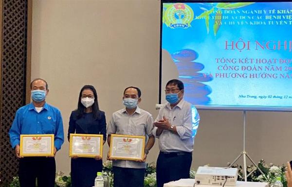 Nhân dịp này, đồng chí Nguyễn Quốc Tuấn - Chủ tịch CĐ ngành Y tế Khánh Hòa đã trao tặng giấy khen cho các cá nhân và tập thể CĐCS có thành tích xuất sắc trong công tác phòng chống dịch bệnh Covid-19. Qua đây vừa là động viên cho các cán bộ y tế ngành y tế Khánh Hòa hăng hái trong công tác phòng chống dịch bệnh, vừa là tuyên truyền đoàn viên CNVCLĐ thi đua, bảo đảm thực hiện có hiệu quả các nhiệm vụ công tác, góp phần vào kết quả chung của Công đoàn ngành Y tế.