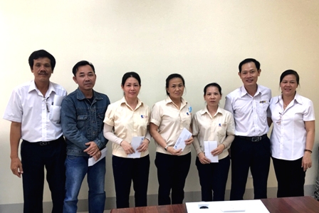 Sáng ngày 28-6, thừa ủy quyền của Công đoàn TCT Khánh Việt, Công đoàn Xí nghiệp May Khatoco đã tổ chức gặp mặt thăm hỏi và trao tặng số tiền hỗ trợ 52 triệu đồng trích từ Quỹ “Mái ấm Công đoàn Khatoco” cho 06 trường hợp người lao động của Xí nghiệp bị bệnh hiểm nghèo. Đến tham dự buổi gặp mặt có ông Trần Xuân Cải – Phó Giám đốc Xí nghiệp, bà Ngô Thị Hà Trang – UV BCH Công đoàn TCT Khánh Việt, ông Đặng Hữu Cường Trai – Chủ tịch Công đoàn Xí nghiệp cùng 04 công nhân được nhận tiền hỗ trợ từ Quỹ “Mái ấm Công đoàn Khatoco”.