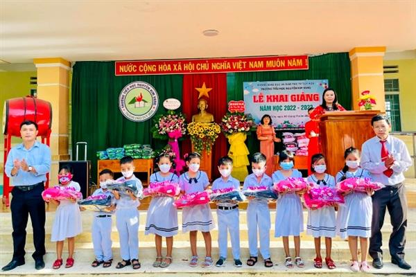 Trong không khí tưng bừng khai giảng trên khắp cả nước, sáng 05/9/2022, đại diện Công đoàn cơ sở và Đoàn thanh niên các đơn vị đã có mặt tại 15 điểm trường tại các tỉnh Khánh Hòa, Phú Yên, Gia Lai và Quảng Nam để trao tặng 820 phần quà, gồm: 9.260 cuốn vở, 472 bộ quần áo đồng phục và 342 cặp học sinh cho 820 em có hoàn cảnh khó khăn, vượt khó học tốt chương trình “Giúp trẻ đến trường” năm 2022 với tổng giá trị 213 triệu đồng.