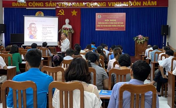 Tại hội nghị, báo cáo viên Nguyễn Nam Hải - Uỷ viên Ban Thường vụ, Trưởng Ban Tổ chức Liên đoàn Lao động tỉnh truyền đạt những nội dung cơ bản và những điểm mới của Điều lệ Công đoàn Việt Nam khóa XII; trọng tâm là quy định của Điều lệ về huy hiệu công đoàn, đối tượng gia nhập công đoàn, đại hội công đoàn các cấp, trình tự, thủ tục thành lập công đoàn cơ sở, quy định về cán bộ, bổ sung Ban chấp hành Công đoàn và các chức danh của BCH...