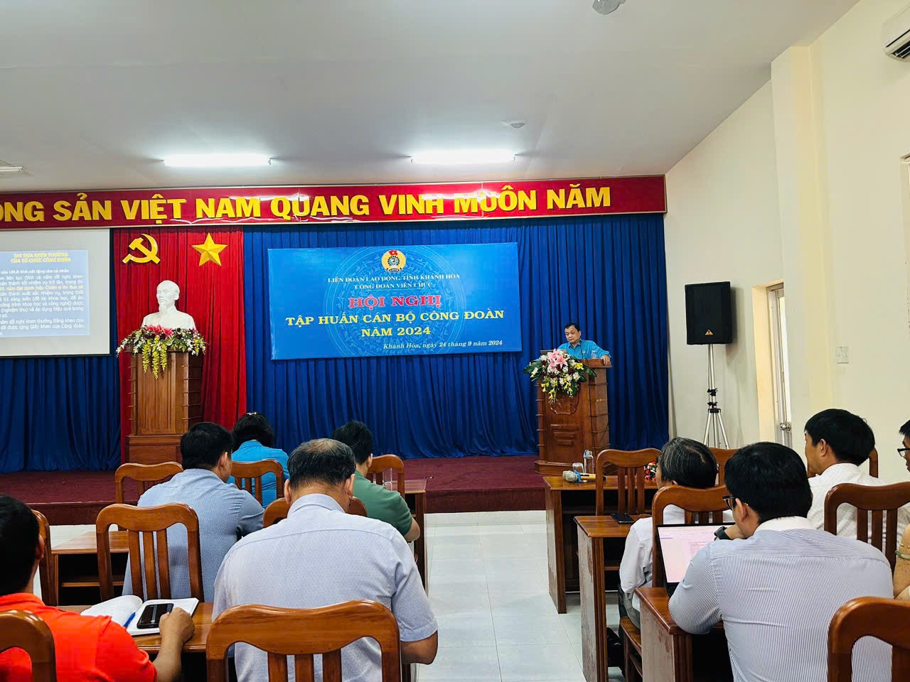 Thực hiện Nghị quyết Đại hội VI CĐVC tỉnh Khánh Hòa nhiệm kỳ 2023-2028 và Chương trình công tác năm, Ban Thường vụ CĐVC tỉnh tổ chức tập huấn, bồi dưỡng nghiệp vụ cán bộ CĐCS năm 2024 cho 280 lượt cán bộ CĐCS trực thuộc, cán bộ CĐ thuộc CĐ ngành Trung ương tham gia thi đua cùng CĐVC tỉnh.