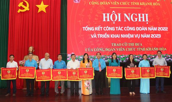Phát động phong trào thi đua năm 2023, Công đoàn Viên chức tỉnh phấn đấu 100% công đoàn cơ sở triển khai có hiệu quả phong trào thi đua do Công đoàn cấp trên phát động, thực hiện đăng ký các danh hiệu thi đua tập thể và cá nhân theo qui định. Chú trọng việc xây dựng các điển hình tiên tiến, chiến sĩ thi đua các cấp, đăng ký các đề tài, sáng kiến kinh nghiệm, đăng ký các công trình sản phẩm chào mừng các ngày lễ lớn trong năm 2023. Tham gia tích cực giai đoạn 2 Chương trình "1 triệu sáng kiến - nỗ lực vượt khó, sáng tạo, quyết tâm chiến thắng đại dịch Covid-19". Phấn đấu 100% cán bộ, đoàn viên được học tập, quán triệt các chủ trương, đường lối của Đảng, chính sách pháp luật của Nhà nước, nhiệm vụ công tác công đoàn. Có 100% CĐCS phối hợp với chính quyền tổ chức tốt Hội nghị CBCCVC, Hội nghị Người Lao động; bổ sung, sửa đổi các quy chế thi đua, quy chế chi tiêu nội bộ, quy chế phối hợp giữa Công đoàn và chính quyền phù hợp với tình hình đặc điểm của cơ quan, đơn vị, phát huy tốt dân chủ cơ sở trong xây dựng cơ quan, đơn vị vững mạnh. Phấn đấu có từ 90% đoàn viên Công đoàn trở lên là đoàn viên xuất sắc; có từ 95% CĐCS trở lên hoàn thành tốt nhiệm vụ; 80% Cán bộ Công đoàn cơ sở được bồi dưỡng, đào tạo nghiệp vụ công tác công đoàn. Kết nạp 100% CCVCLĐ đủ điều kiện vào tổ chức công đoàn. Mỗi công đoàn cơ sở giới thiệu ít nhất 1 đoàn viên ưu tú để Đảng xem xét và kết nạp. Tổ chức tốt các hoạt động văn hóa, văn nghệ, thể thao, tạo khí thế phấn khởi, nâng cao đời sống vật chất và tinh thần của cán bộ, đoàn viên, góp phần thiết thực vào việc phấn đấu hoàn thành vượt mức kế hoạch phát triển kinh tế - xã hội của tỉnh Khánh Hòa năm 2023.
