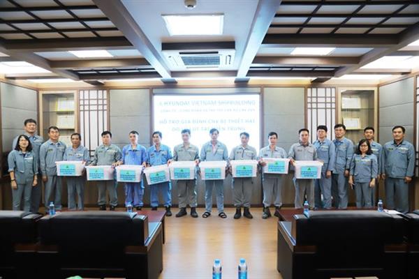 Lãnh đạo Công ty TNHH Hyundai Việt Nam trao hỗ trợ cho CNV thiệt hại do bão lũ