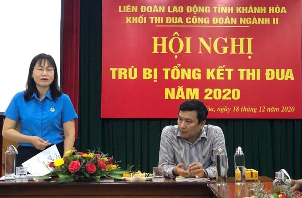 Ngày 18/12/2020, tại Hội trường Sở Xây dựng Khánh Hòa, Khối thi đua công đoàn ngành II tổ chức Hội nghị trù bị tổng kết công tác thi đua năm 2020. Tham dự và chỉ đạo Hội nghị có đồng chí Nguyễn Thị Hằng, Phó Chủ tịch thường trực Liên đoàn Lao động tỉnh.