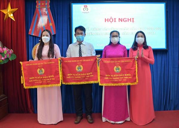 Năm học 2020-2021, Công đoàn ngành Giáo dục tỉnh Khánh Hòa đã hoàn thành xuất sắc nhiệm vụ, dẫn đầu Khối thi đua Công đoàn ngành I, được Tổng Liên đoàn Lao động Việt Nam tặng cờ thi đua xuất sắc toàn diện năm 2020. Công đoàn tích cực tham mưu với chính quyền giải quyết đầy đủ các chế độ, chính sách đối với cán bộ, nhà giáo, người lao động; chăm lo, hỗ trợ, thăm hỏi, động viên đoàn viên, người lao động kịp thời, nhất là trong thời điểm dịch bệnh Covid-19 diễn biến phức tạp; Tổ chức triển khai có hiệu quả các phong trào thi đua và các cuộc vận động lớn của ngành; Thực hiện tốt công tác xã hội…Kết quả trong năm học: 36/36 (100%) CĐCS được xếp loại hoàn thành tốt nhiệm vụ, trong đó có 07 CĐCS được xếp loại hoàn thành xuất sắc nhiệm vụ. Nhân dịp này, Liên đoàn Lao động tỉnh tặng Bằng khen cho 05 tập thể, 13 cá nhân; Công đoàn Giáo dục Việt Nam tặng Bằng khen chuyên đề “Dạy tốt - Học tốt” cho 01 tập thể, 04 cá nhân; Công đoàn ngành tặng Cờ thi đua xuất sắc cho 03 đơn vị dẫn đầu Khối; tặng Giấy khen cho 09 tập thể và 121 cá nhân có thành tích xuất sắc trong hoạt động công đoàn năm học 2020-2021.