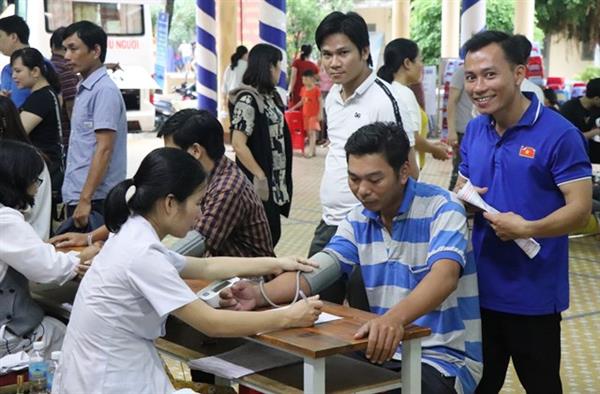 Y, bác sĩ khám sức khỏe CNVCLĐ trước khi hiến máu