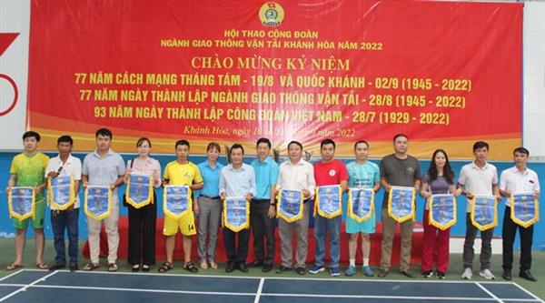 Lãnh đạo CĐN Giao thông trao tặng Cờ lưu niệm cho các đội