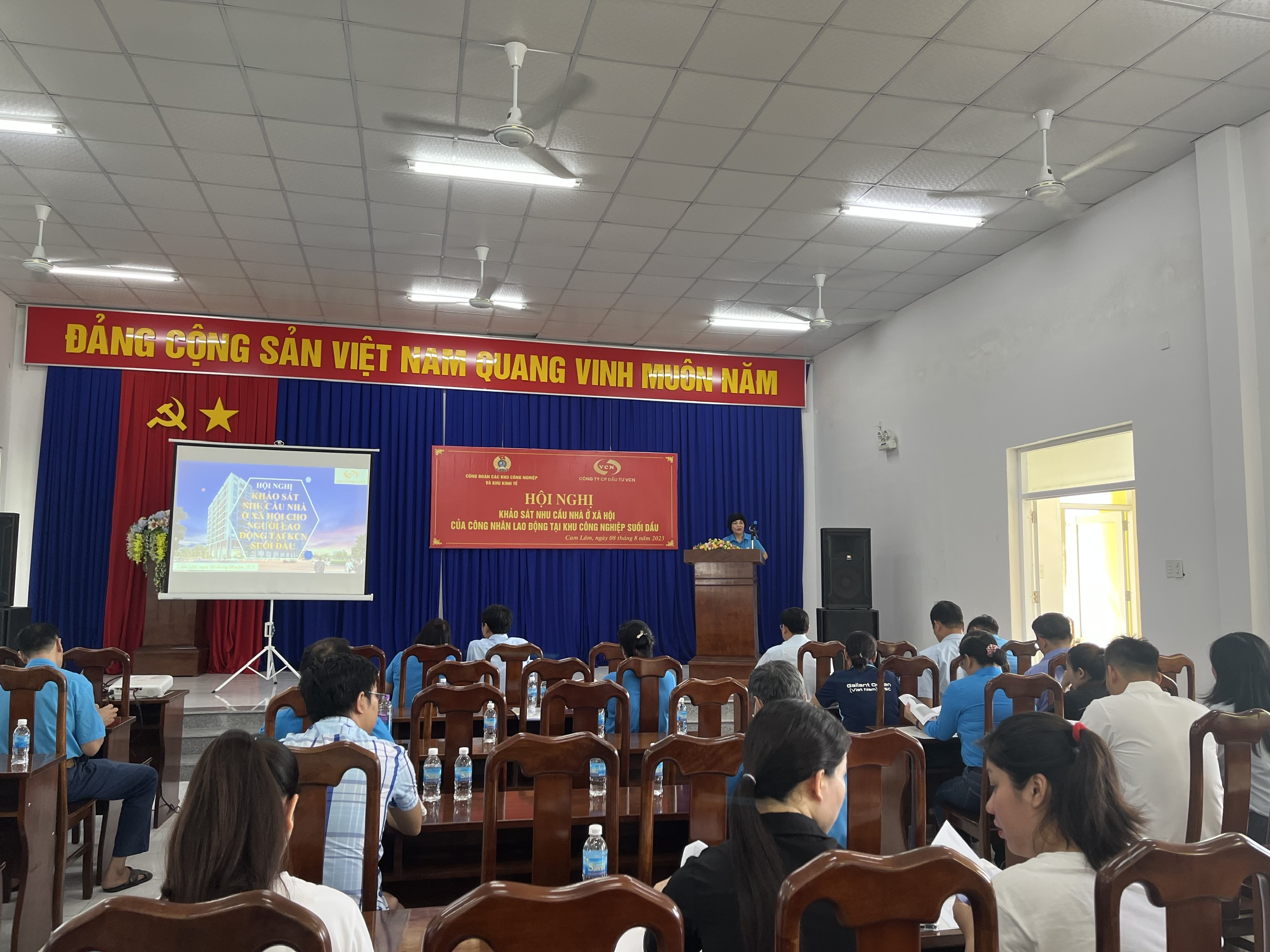 Sáng 8/8/2023, Công đoàn các Khu Công nghiệp và Khu Kinh tế tỉnh Khánh Hòa (Công đoàn các KCN) phối hợp với Công ty CP Đầu tư VCN tổ chức Hội nghị triển khai kế hoạch khảo sát nhu cầu nhà ở xã hội (NOXH) của công nhân lao động (CNLĐ) tại Khu Công nghiệp Suối Dầu. Tham dự có đồng chí Trần Thị Hương – Phó Chủ tịch LĐLĐ tỉnh và đại diện Ban Quản lý Khu Kinh tế Vân Phong.