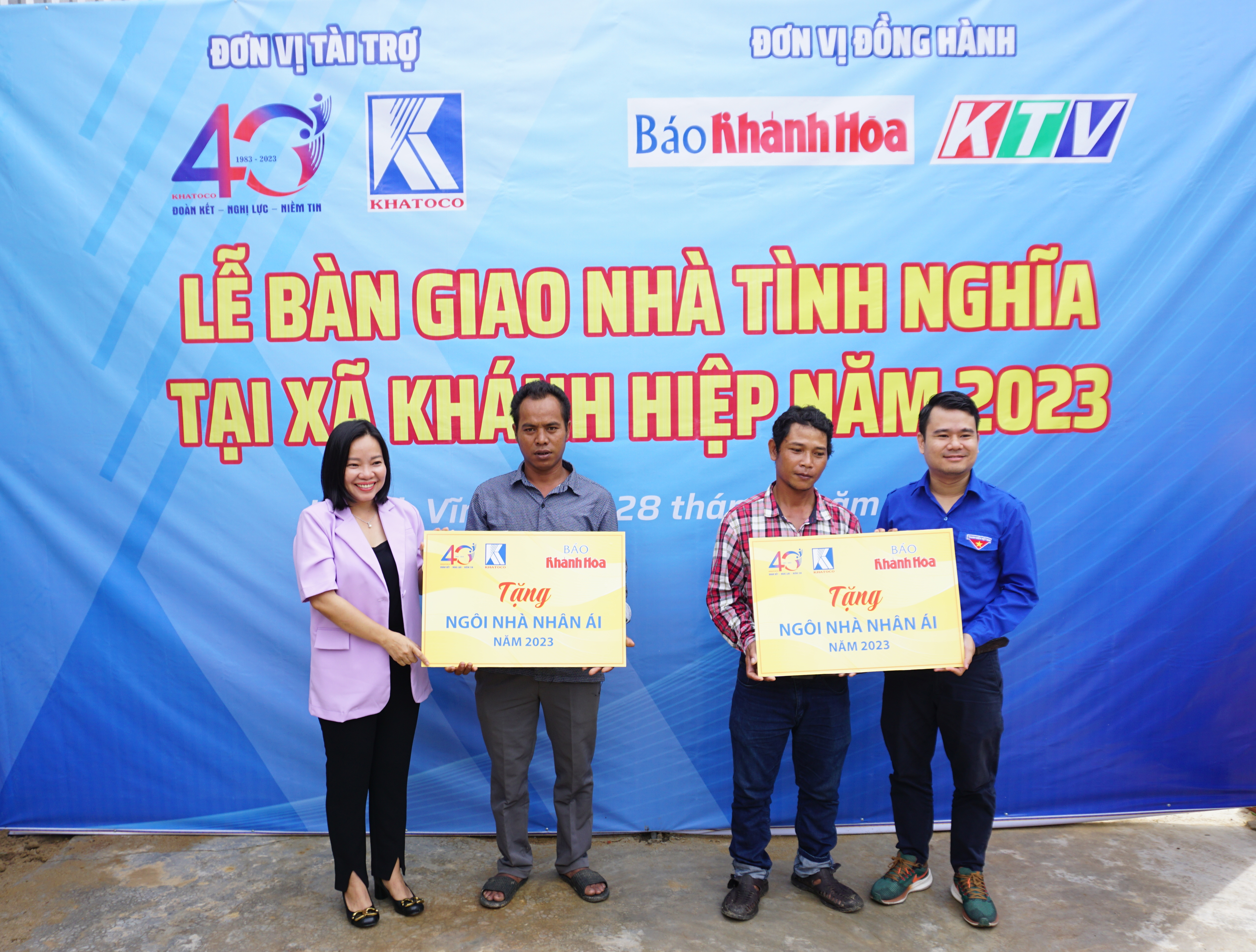 Ông Nguyễn Thành Tuyến - Phó Chủ tịch Công đoàn Tổng công ty Khánh Việt chia sẻ: “Những năm qua, được sự phân công của UBND tỉnh Khánh Hòa về việc hỗ trợ, giúp đỡ xã Khánh Hiệp, Khatoco đã có nhiều hoạt động thiết thực để giúp đỡ địa phương trong công cuộc xóa đói, giảm nghèo, xây dựng nông thôn mới. Đặc biệt, năm nay, Khatoco chào mừng kỷ niệm 40 năm xây dựng và phát triển (04/10/1983 - 04/10/2023), trong đó chương trình tài trợ xây dựng 4 nhà tình nghĩa cho các hộ nghèo tại xã Khánh Hiệp là chương trình ý nghĩa nằm trong chuỗi hoạt động chào mừng sự kiện đặc biệt này của Khatoco, với hy vọng chia sẻ bớt một phần khó khăn, giúp các hộ gia đình có một ngôi nhà mới ấm áp, khang trang hơn để ổn định cuộc sống, vượt qua khó khăn, vươn lên thoát nghèo.”