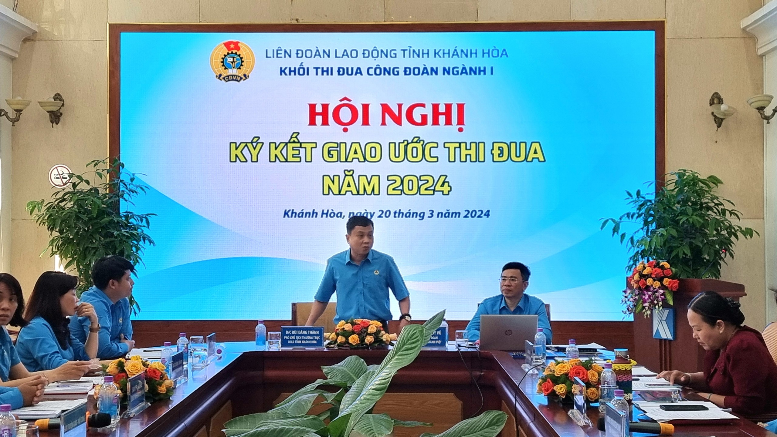 Sáng 20/3, Khối thi đua Công đoàn ngành I, gồm các đơn vị: Công đoàn Tổng Công ty Khánh Việt, Công đoàn Viên chức tỉnh, Công đoàn ngành Y tế tỉnh, Công đoàn ngành Giáo dục tỉnh tổ chức Hội nghị ký kết giao ước thi đua năm 2024. Công đoàn Tổng công ty Khánh Việt đơn vị Trưởng Khối thi đua năm 2024 chủ trì Hội nghị. Đồng chí Bùi Đăng Thành – Phó Chủ tịch thường trực LĐLĐ tỉnh dự và chỉ đạo Hội nghị.