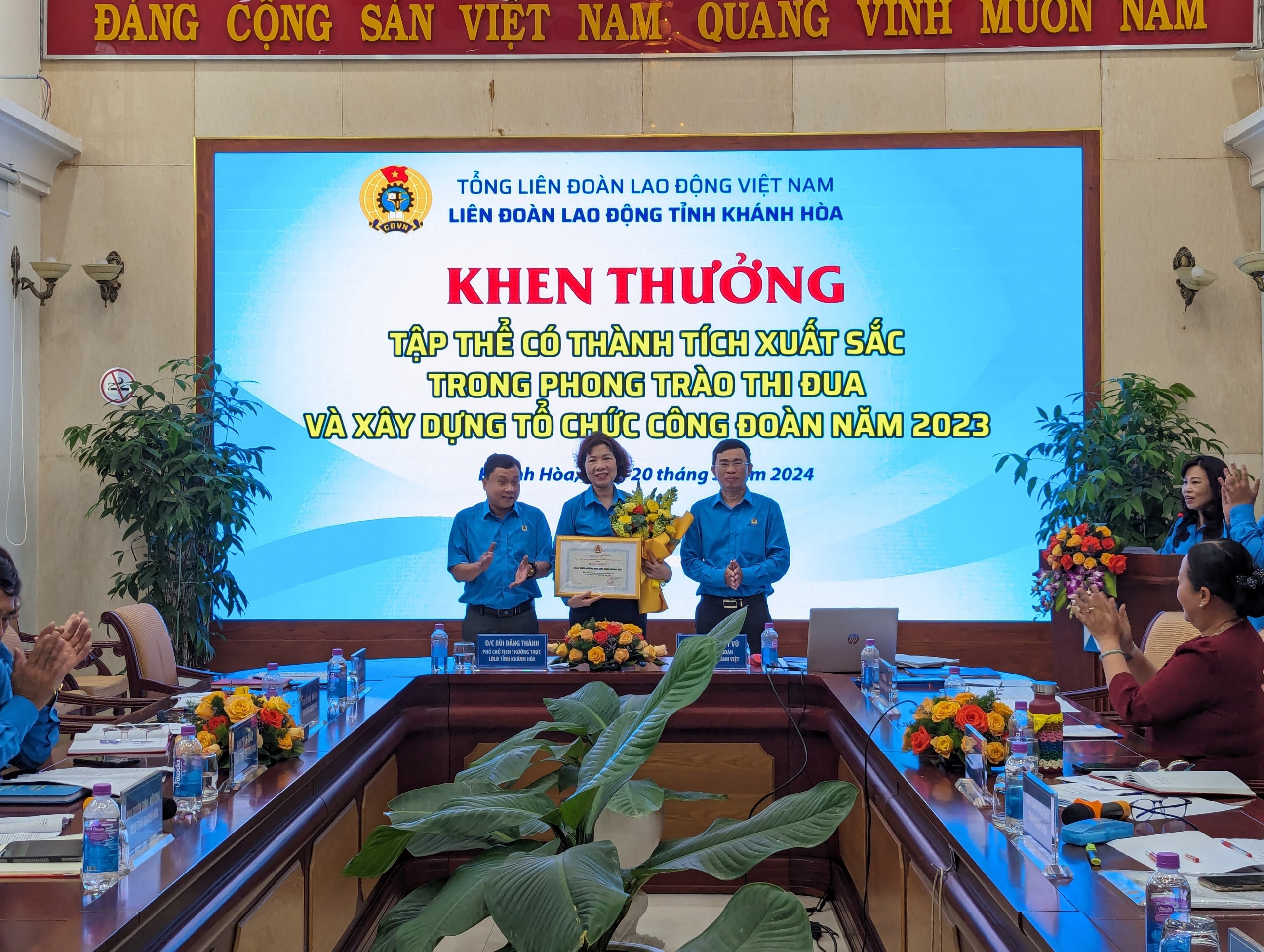 Dịp này, LĐLĐ tỉnh Khánh Hòa tặng Bằng khen cho Công đoàn ngành Giáo dục tỉnh, đơn vị xếp thứ 3 trong Khối thi đua, đã có thành tích xuất sắc trong phong trào thi đua và xây dựng tổ chức công đoàn vững mạnh năm 2023.
