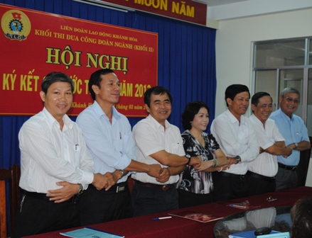 Khối thi đua Công đoàn ngành II gồm: CĐ Văn hóa, Thể thao và Du lịch; CĐ ngành Xây dựng; CĐ ngành Giao thông Vận tải; CĐ Khu công nghiệp và Khu kinh tế tỉnh; CĐ ngành Công thương và CĐ Tổng Công ty Khánh Việt. Nội dung đăng ký thi đua phấn đấu thực hiện tốt công tác tuyên truyền giáo dục mà trọng tâm là tuyên truyền Bộ luật Lao động và Luật Công đoàn, Nghị quyết Đại hội CĐ các cấp; phối hợp với chính quyền thực hiện có hiệu quả quy chế dân chủ cơ sở, rà soát và thực hiện tốt thỏa ước lao động tập thể; tham gia giám sát việc thực hiện chế độ, chính sách, làm tốt công tác chăm lo đời sống vật chất, tinh thần cho CNVCLĐ; tích cực vận động CNVCLĐ tham gia các hoạt động xã hội, ủng hộ Quỹ “Mái ấm Công đoàn Khánh Hòa”…