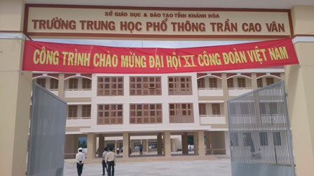 Ngày 22.8.2013, tại công trình Trường THPT Trần Cao Vân (phường Ninh Hiệp, thị xã Ninh Hòa, tỉnh Khánh Hòa), công trình chào mừng Đại hội XI Công đoàn Việt Nam, được Giám đốc Ban Quản lý Dự án các công trình xây dựng dân dụng Khánh Hòa, ông Trần Văn Thọ, tiến hành kiểm tra, nghiệm thu, bàn giao cho Sở Giáo dục và Đào tạo tỉnh Khánh Hòa đưa vào sử dụng.