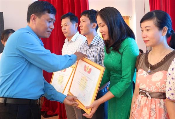 Đ/c Bùi Thanh Bình - Phó Chủ tịch LĐLĐ tỉnh tặng bằng khen cho tập thể và cá nhân xuất sắc
