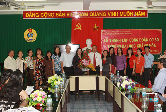 Chiều ngày 2-12, Công đoàn Viên chức tỉnh Khánh Hòa tổ chức Lễ công bố quyết định thành lập Công đoàn cơ sở Trường Đại học Khánh Hòa. Tham dự buổi lễ có các đồng chí: Nguyễn Hòa - Ủy viên BCH Tổng LĐLĐ Việt Nam, Tỉnh ủy viên, Chủ tịch LĐLĐ tỉnh; Võ Thị Ngọc Hà - Chủ tịch Công đoàn Viên chức tỉnh. Cùng dự còn có các đồng chí là ủy viên Ban thường vụ Công đoàn Viên chức tỉnh.
