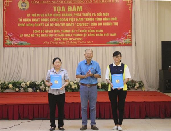 Nhân dịp này, Công đoàn ngành Giao thông vận tải trao quyết định thành lập Công đoàn cơ sở Công ty TNHH Thương mại Ngọc Lễ và Công đoàn cơ sở Công ty TNHH Nhật Nam; trao 28 suất hỗ trợ cho đoàn viên công đoàn khó khăn, mỗi suất trị giá 500.000 đồng; trao 60 hộp sữa trị giá 30 triệu đồng cho con của đoàn viên có hoàn cảnh khó khăn.