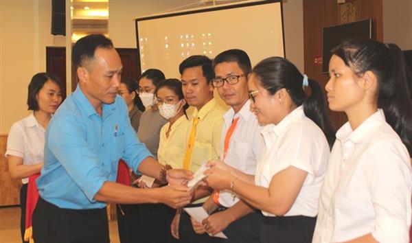 Đ/c Nguyễn Thanh Tuấn - Phó Chủ tịch CĐN Giao thông vận tải tỉnh trao hỗ trợ cho đoàn viên khó khăn