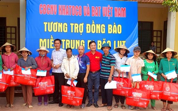 Với truyền thống “lá lành dùm lá rách”, nhằm chia sẽ những những mất mát của người dân nơi đây, trong hai ngày 2 và 3-11-2020, Khatoco đã cử đoàn trực tiếp tặng quà hỗ trợ người dân vùng lũ tại các tỉnh Quảng Bình, Quảng Trị và Thừa Thiên Huế. Đoàn đã tặng 800 xuất quà (mỗi suất quà trị giá 700.000 đồng, gồm 01 chiếc chăn và 500.000 đồng tiền mặt) cho các hộ gia đình bị ảnh hưởng nặng do bão lụt; bên cạnh đó Khatoco đã phối hợp với các cơ quan báo chí như Báo Tuổi trẻ, báo Thanh niên, báo Khánh Hòa, báo Lao động, báo Người lao động…tặng 35 ngàn cuốn vở cho các em học sinh miền Trung với mong muốn cùng chung tay góp sức, chia sẽ những khó khăn, mất mát về vật chất lẫn tinh thần do thiên tai gây ra, giúp người dân miền Trung sớm ổn định cuộc sống.