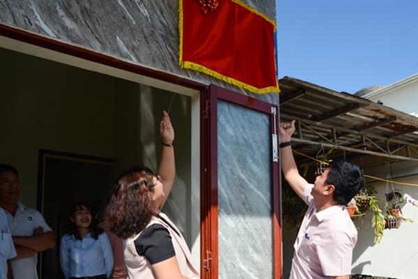 Đại diện Tổng công ty Khánh Việt và Đài KTV thực hiện nghi thức bàn giao nhà mới