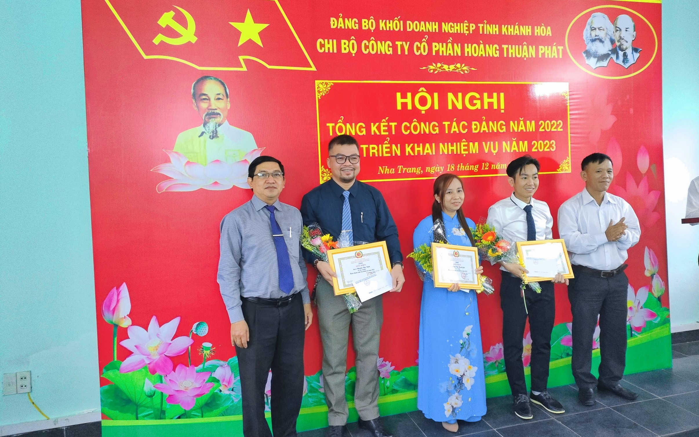 Dịp này, Chi bộ Công ty Cổ phần Hoàng Thuận Phát tặng giấy khen cho 3 đảng viên hoàn thành xuất sắc nhiệm vụ, biểu dương 1 đảng viên có thành tích nổi trội năm 2022.