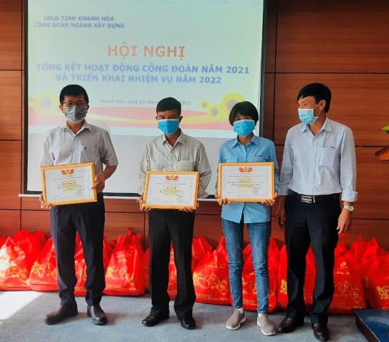 Năm 2021 là năm có rất nhiều khó khăn, thách thức, dịch bệnh Covid-19 diễn biến phức tạp, khó lường, gây hậu quả nặng nề đối với sức khỏe, tính mạng con người và nền kinh tế - xã hội toàn tỉnh, các lĩnh vực hoạt động ngành Xây dựng bị ảnh hưởng nặng nề: Nhiều công trình, dự án tiếp tục phải thi công cầm chừng hoặc tạm dừng.... Tuy nhiên, với sự lãnh đạo, chỉ đạo, điều hành quyết liệt của Liên đoàn Lao động tỉnh, lãnh đạo Sở Xây dựng và nỗ lực phấn đấu của cán bộ, đoàn viên, NLĐ, CĐN đã đạt được những kết quả khả quan: Phát triển mới được hơn 200 đoàn viên, vượt kế hoạch giao và tiếp nhận 1 CĐCS với 21 đoàn viên, giới thiệu được 17/38 đoàn viên ưu tú cho Đảng xem xét, kết nạp; 01 cá nhân được UBND tỉnh Khánh Hòa xét tặng danh hiệu Điển hình tiên tiến – 2021; vận động quỹ Mái ấm CĐ được 18 triệu đồng (đạt 90% so KH được giao).