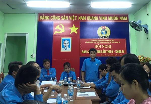 Nhằm đánh giá kết quả hoạt động Công đoàn quý I và triển khai phương hướng hoạt động trong quý II/2019, sáng ngày 29/3, Công đoàn các Khu Công nghiệp và Khu Kinh tế (Công đoàn KCN) Khánh Hòa tổ chức Hội nghị Ban Chấp hành mở rộng quý I/2019. Tham dự và chỉ đạo Hội nghị có đồng chí Bùi Đăng Thành - Ủy viên Ban Thường vụ, Trưởng ban Chính sách Pháp luật LĐLĐ tỉnh.