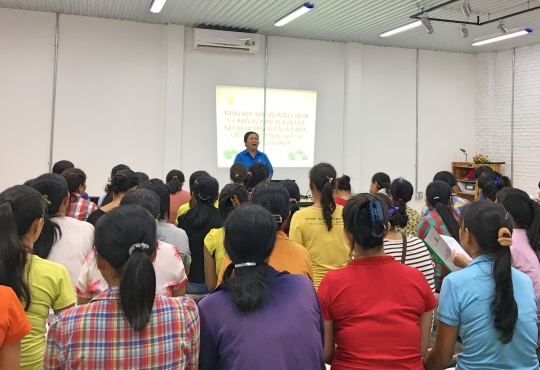 Ngày 23/9, Công đoàn các KCN-KKT tỉnh phối hợp với Ban Nữ công LĐLĐ tỉnh Khánh Hòa tổ chức lớp tuyên truyền Giáo dục đời sống gia đình và phòng chống bạo lực gia đình trong CNVCLĐ cho 100 CNLĐ tại Công ty TNHH MTV Rapexco-Đại Nam.