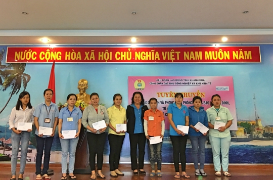 Nằm trong chuỗi hoạt động chăm lo, hỗ trợ cho công nhân lao động, đặc biệt là nữ CNLĐ các doanh nghiệp ngoài nhà nước, sáng ngày 27/10, Công đoàn các Khu Công nghiệp và Khu Kinh tế (KCN – KKT) tỉnh Khánh Hòa phối hợp với Ban Nữ Công LĐLĐ tỉnh và dự án BlueStar tổ chức lớp truyên truyền “Giáo dục đời sống gia đình và phòng chống bạo lực gia đình” lồng ghép tư vấn sức khỏe sinh sản phụ nữ cho gần 200 nữ công nhân lao động (CNLĐ) tại KCN Suối Dầu.