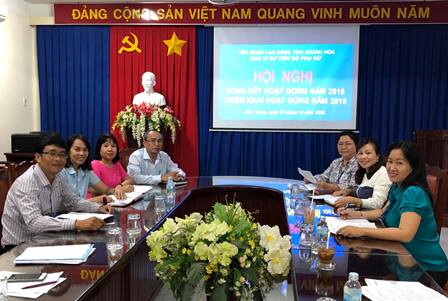 Năm 2018, Ban vì sự tiến bộ Phụ nữ triển khai, thực hiện các hoạt động Vì sự tiến bộ phụ nữ và bình đẳng giới; theo đó, các nội dung về công tác Vì sự tiến bộ phụ nữ và bình đẳng giới đã được lồng ghép hiệu quả hơn, rõ nét hơn vào công tác cán bộ và công tác chuyên môn của các ban, đơn vị của cơ quan, 34% nữ CBCC giữ vị trí quản lý, lãnh đạo, 43% trong cấp ủy và 36% ủy viên Ban Thường vụ LĐLĐ tỉnh. Qua đó, các đại biểu tham dự đã cùng nhau trao đổi, thảo luận, góp ý kiến vào Dự thảo Báo cáo Tổng kết công tác vì sự tiến bộ phụ nữ, dự thảo phân công nhiệm vụ cho các ủy viên Ban Vì sự tiến bộ phụ nữ của Cơ quan; đề ra những giải pháp triển khai thiết thực, tăng cường công tác thông tin, tuyên truyền nâng cao nhận thức cho các lãnh đạo là nam về bình đẳng giới. Tăng cường công tác tập huấn nghiệp vụ về BĐG và VSTBPN; thường xuyên quan tâm công tác đào tạo, bồi dưỡng, cập nhật kiến thức, nâng cao năng lực cho đội ngũ cán bộ, công chức làm công tác BĐG và VSTBPN.