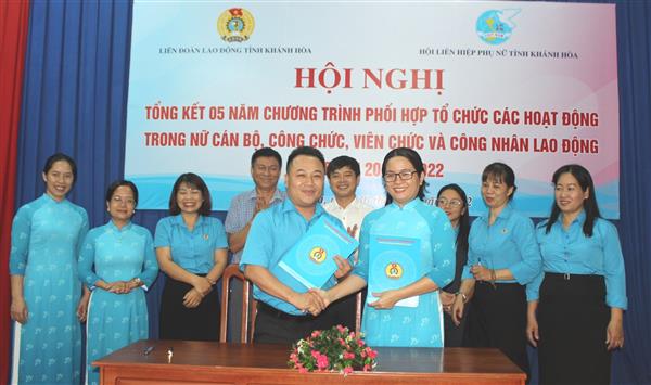 Đồng chí Nguyễn Đức Trí – Phó Chủ tịch LĐLĐ tỉnh cho biết: 5 năm qua, công tác phối hợp tổ chức các hoạt động đã mang lại hiệu quả thiết thực, nổi bật nhất là việc gắn kết các phong trào thi đua như “Giỏi việc nước, đảm việc nhà”, “Lao động giỏi, lao động sáng tạo” do Tổng LĐLĐVN phát động và các phong trào “Phụ nữ tích cực học tập, lao động, sáng tạo, xây dựng gia đình hạnh phúc”, cuộc vận động xây dựng gia đình “5 không, 3 sạch” do Trung ương Hội LHPN Việt Nam phát động. Qua đó, phát huy được phẩm chất, trí tuệ, năng lực của nữ CB, CC, VC, CNLĐ “Tự tin - Tự trọng - Trung hậu - Đảm đang”, thực hiện tốt chức năng người vợ, người mẹ trong gia đình, góp phần xứng đáng vào sự nghiệp phát triển kinh tế - xã hội của tỉnh Khánh Hòa nói riêng và đất nước nói chung.