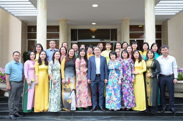Phụ nữ Văn phòng Tỉnh ủy chụp ảnh lưu niệm cùng đồng chí Nguyễn Hải Ninh, Bí thư Tỉnh ủy