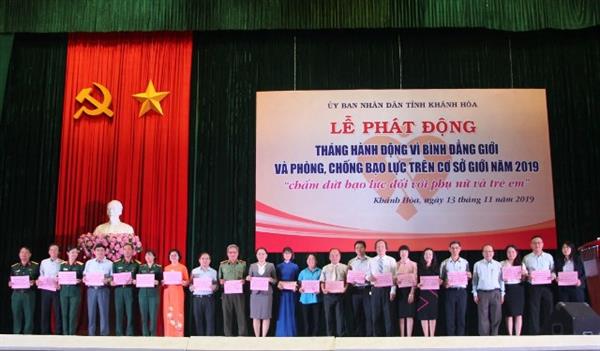 Sáng 13.11, UBND tỉnh Khánh Hòa tổ chức Lễ phát động Tháng hành động vì bình đẳng giới và phòng, chống bạo lực trên cơ sở giới năm 2019. Với chủ đề “Chấm dứt bạo lực đối với phụ nữ và trẻ em”, tháng hành động vì bình đẳng giới và phòng, chống bạo lực trên cơ sở giới năm 2019 diễn ra từ ngày 15.11 đến 15.12. 2019.
