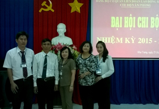 Từ ngày 19 đến ngày 31/3/2015, 100% chi bộ trực thuộc Đảng bộ Liên đoàn Lao động Khánh Hòa, đã hoàn thành tốt Kế hoạch của Đảng ủy Liên đoàn Lao động Khánh Hòa về việc tổ chức Đại hội chi bộ nhiệm kỳ 2015 – 2017, đạt kết quả tốt đẹp.