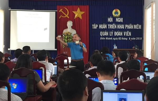 Ngày 02/8/2019, Liên đoàn Lao động huyện Diên Khánh đã tổ chức lớp tập huấn kỹ năng sử dụng phần mềm quản lý đoàn viên công đoàn cho 105 cán bộ CĐCS là Chủ tịch, hoặc Phó Chủ tịch CĐ đại diện cho 131 CĐCS trực thuộc.