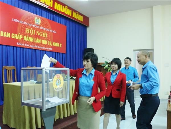 Cùng ngày, Hội nghị đã tổ chức bầu cử bổ sung Ủy viên Ban Chấp hành Liên đoàn Lao động tỉnh khóa X, nhiệm kỳ 2018 - 2023; Kết quả, đồng chí Lâm Thị Phương Nga - Chủ tịch Liên đoàn Lao động thành phố Cam Ranh, đồng chí Nguyễn Thị Bích Thủy - Phó Chánh Văn phòng Liên đoàn Lao động tỉnh và đồng chí Phạm Huy Trường – Phó Chủ tịch phụ trách Công đoàn ngành Nông nghiệp –Phát triển nông thôn tỉnh đã trúng cử vào Ban Chấp hành Liên đoàn Lao động tỉnh, khóa X, nhiệm kỳ 2018-2023 với tỷ lệ phiếu bầu đạt 100%.