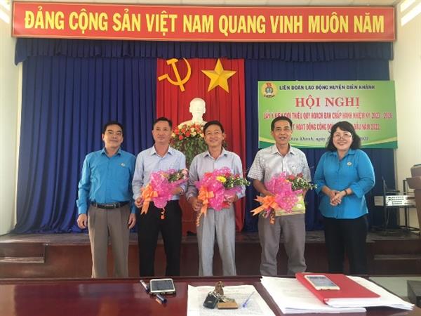 Ngoài ra, Liên đoàn Lao động huyện Diên Khánh triển khai hướng dẫn thực hiện quy trình lấy ý kiến giới thiệu quy hoạch Ban Chấp hành LĐLĐ huyện nhiệm kỳ 2023-2028. Kết quả sau thực hiện các bước giới thiệu, có 17/17 đồng chí được tín nhiệm cao, tỷ lệ tín nhiệm từ 93% trở lên.