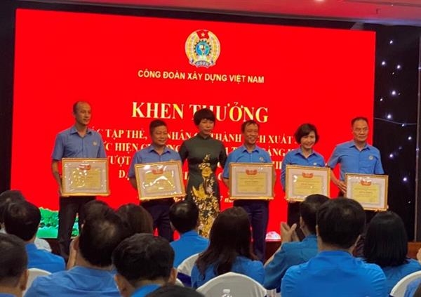Đ/c Nguyễn Thị Lệ Thủy - Chủ tịch CĐ Xây dựng Việt Nam trao giấy khen các sáng kiến tiêu biểu