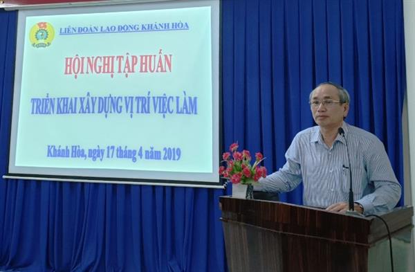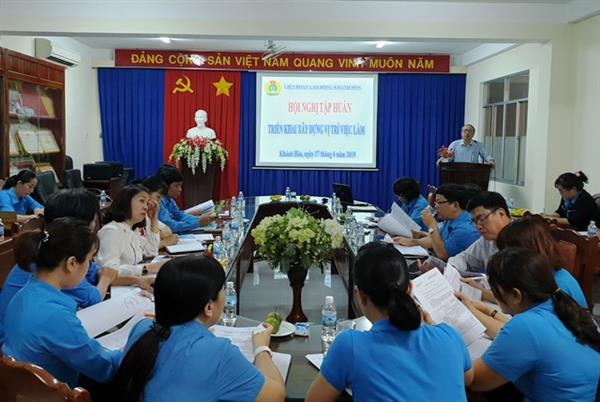 Hội nghị đã triển khai văn bản số 438/TLĐ của Tổng Liên đoàn Lao động Việt Nam về việc xây dựng vị trí việc làm và số người làm việc tại cơ quan tham mưu giúp việc của công đoàn; Công văn số 2510 - CV/TU của Tỉnh ủy Khánh Hòa về việc thực hiện Quyết định số 4135- QĐ/BTCTW của Ban Tổ chức Trung ương về ban hành tạm thời danh mục vị trí việc làm, bản mô tả vị trí việc làm công chức trong hệ thống công đoàn, Quyết định số 4139-QĐ/BTCTW về thí điểm bố trí sử dụng, tuyển dụng và quản lý công chức theo vị trí việc làm trong cơ quan đảng, Mặt trận Tổ quốc Việt Nam và các tổ chức chính trị - xã hội.