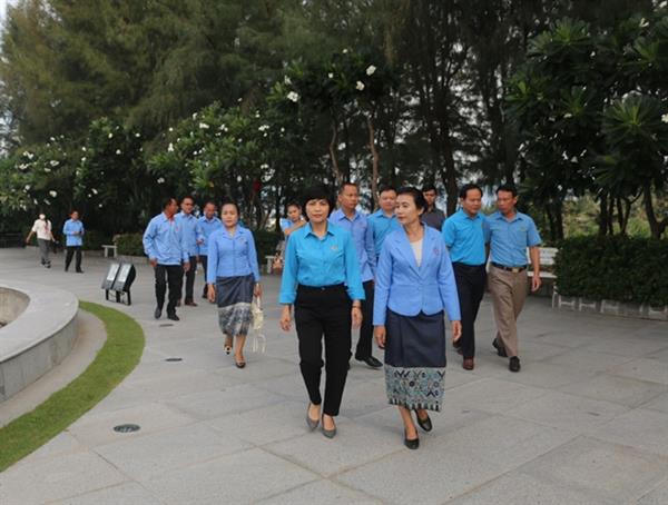 Đoàn Liên hiệp Công đoàn tỉnh Ăttapư tham quan cụm tượng đài "Những người nằm lại phía chân trời"