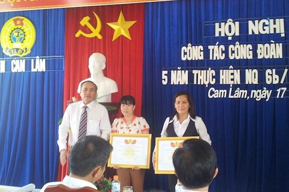 Sáng ngày 17/7, tại Hội trường Mặt trận – đoàn thể huyện, LĐLĐ huyện Cam Lâm tổ chức Sơ kết 5 năm thực hiện Nghị quyết 6b/NQ-BCH ngày 29/1/2011 về “Công tác vận động nữ CNVC-LĐ thời kỳ đẩy mạnh CNH-HĐH đất nước” và Chỉ thị 03/CT-TLĐ ngày 18/8/2010 về phong trào thi đua “Giỏi việc nước, đảm việc nhà”. Đồng chí Nguyễn Hòa – Chủ tịch LĐLĐ tỉnh Khánh Hòa đã đến dự và chỉ đạo hội nghị.