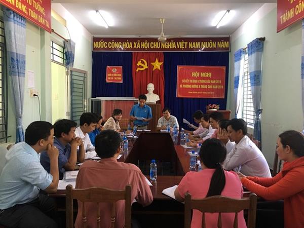 Phát biểu tại hội nghị, đ/c Nguyễn Thành Trung – Phó chủ tịch LĐLĐ huyện đã ghi nhận sự cố gắng, nỗ lực của các xã, thị trấn. Đồng thời chỉ ra những mặt còn hạn chế, tồn tại. Đồng chí lưu ý: Trong 6 tháng cuối năm, các đơn vị tiếp tục phát huy kết quả đạt được, thực hiện tốt phong trào thi đua; đặc biệt là tổ chức các hoạt động thiết thực hướng đến kỷ niệm 90 năm ngày thành lập Công đoàn Việt Nam (28/7/1929-28/7/2019).