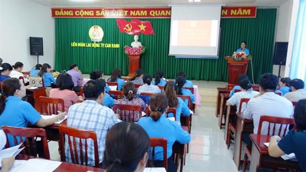 Thực hiện Kế hoạch số 27/KH-LĐ ngày 23/5/2022 của Liên đoàn Lao động tỉnh Khánh Hòa và Chỉ thị số 10-CT/TU ngày 09/6/2022 của Thành uỷ Cam Ranh về lãnh đạo đại hội công đoàn cơ sở tiến tới Đại hội Công đoàn thành phố Cam Ranh lần thứ XII, nhiệm kỳ 2023-2028. Mới đây, Liên đoàn Lao động thành phố tổ chức Hội nghị triển khai Kế hoạch số 36/KH-LĐ ngày 29/7/2022 về công tác Đại hội công đoàn các cấp tiến tới Đại hội XII Công đoàn thành phố Cam Ranh, nhiệm kỳ 2023-2028. Đồng chí Vũ Thị Yên – Thành ủy viên, Chủ tịch LĐLĐ thành phố chủ trì hội nghị