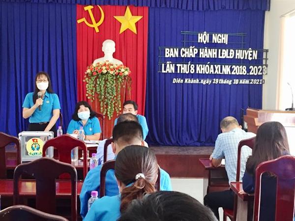 Liên đoàn Lao động huyện Diên Khánh tổ chức Hội nghị Ban Chấp hành lần thứ 08 khóa XI, nhiệm kỳ 2018 – 2023