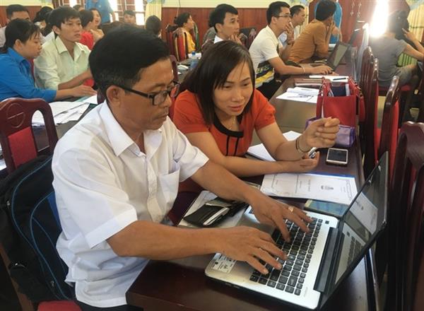 Các học viên thực hiện thao tác nhập dữ liệu đoàn viên