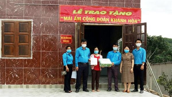Thực hiện chỉ đạo của LĐLĐ tỉnh, Liên đoàn Lao động huyện Khánh Sơn đã trao tặng nhà Mái ấm Công đoàn cho đoàn viên Nguyễn Thị Thanh Tâm - CĐCS Trường Mầm non 1.6, thị trấn Tô Hạp và Lưu Thị Ánh Nguyệt - CĐCS Trường THCS Tô Hạp, xã Sơn Trung.